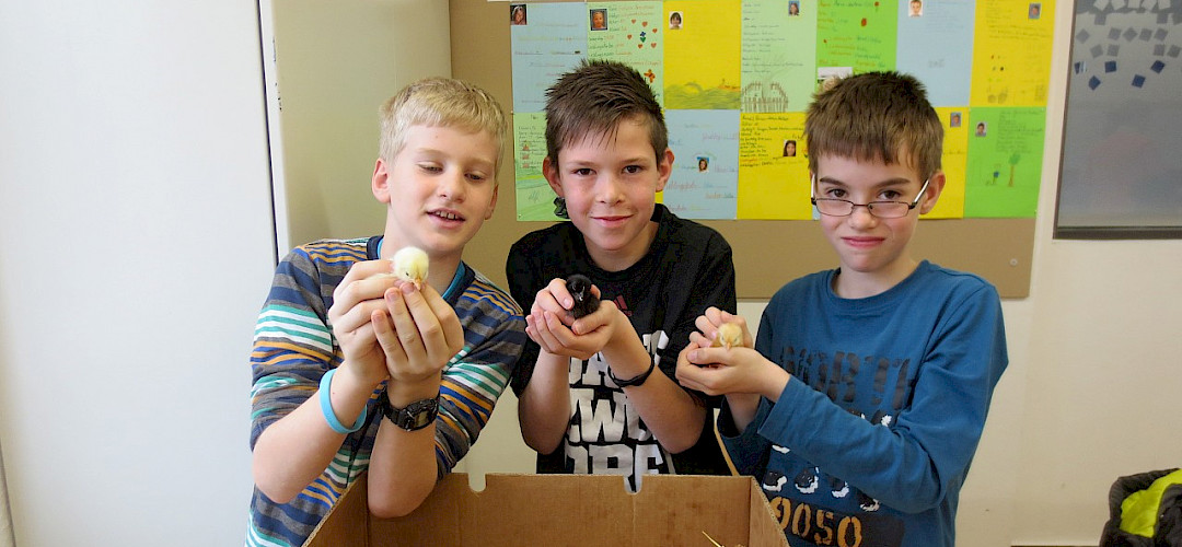 (scn) Im Fach NWA (Naturwissenschaftliches Arbeiten) beschäftigen sich die SchülerInnen mit Wirbeltieren, unter anderem auch mit der Klasse der Vögel. Das tun sie an der CSH seit Jahren besonders intensiv und anschaulich, nämlich in Form des schulbekannten Kükenprojektes. Das Kükenprojekt ist ein Langzeitexperiment, in dem die SchülerInnen genau beobachten und das Beobachtete dokumentieren. In das Klassenzimmer ziehen befruchtete Eier und ein Brutkasten ein. Der krönende Abschluss ist jeweils das Schlüpfen der Küken, das die Schüler wenn möglich live miterleben - sie übernachten dafür eigens in der Schule. Die geliebten kleinen Küken können leider nur für eine begrenzte Zeit im Klassenzimmer bleiben und finden danach meistens eine Heimat im Garten eines Schülers oder einer Schülerin.