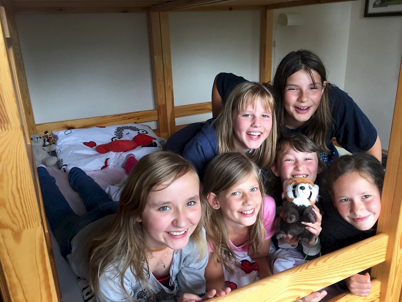 Melina: „Als wir endlich ankamen, haben wir erst einmal alles besichtigt. Wisst ihr, dass es auf dem Hof sehr viele Sachen gab? Zum Beispiel ein großes Trampolin, ein Baumhaus, ein Fußballplatz, 2 große Kettcars mit Anhänger, ein Basketballplatz, Katzen, Hasen und Gänse.“
