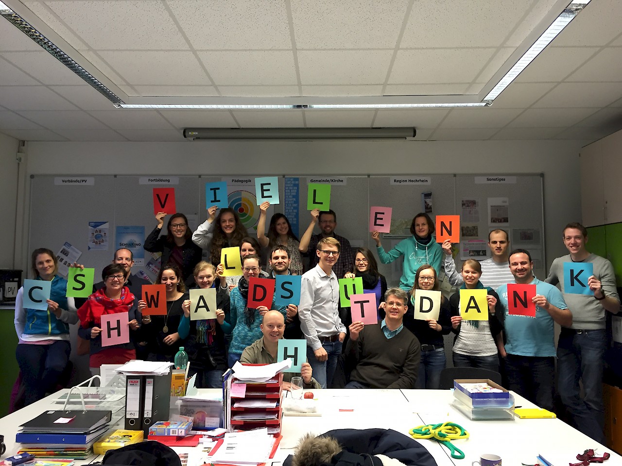 Im Anschluss stellte Schulleiter Bodo Masuhr seinem Team die Aufgabe, eine zusätzliche Leitperspektive zu formulieren. Diese siebte Perspektive sollte deutlich machen, was den Kern christlicher Bildung ausmacht. „Was durchdringt unsere Arbeit an einer christlichen Schule?“, fragte Bodo Masuhr in die Runde. Als Schule mit christlichem Profil muss sich die CSH immer wieder neu damit auseinandersetzen, was das genau bedeutet und wie die konkrete Umsetzung ihres Leitbildes aussehen soll. Bodo Masuhr warb dabei um Klarheit und Ausgewogenheit. Diese seien immer dann besonders wichtig, wenn einem viele Leute (bei der Arbeit) zusähen. Die siebte Leitperspektive soll eine Art „Bedienungsanleitung für christliche Schule“ sein und ist in erster Linie für die Lehrerinnen und Lehrer als Orientierungsrahmen für ihre pädagogische Arbeit gedacht. Gemeinsam mit der FES in Lörrach wird an dieser siebten Perspektive gearbeitet, die am 3. Pädagogischen Tag im Mai an der FES in Lörrach zur Diskussion stehen soll.
