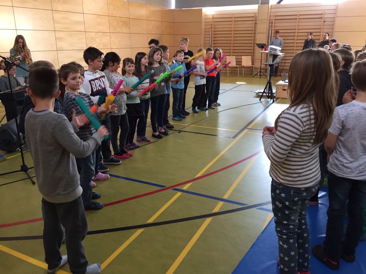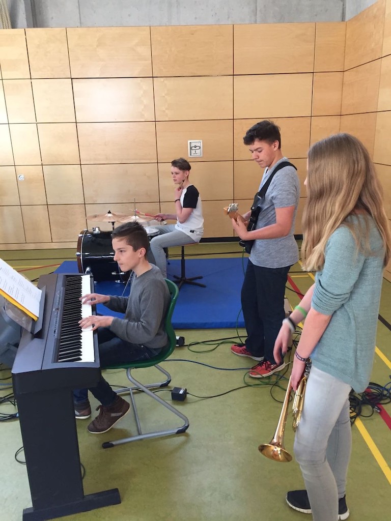 Michael wurde in einem Segensgebet der Grundschüler verabschiedet. Sie überreichten ihm noch eine Sammlung von Gründen, warum Grundschüler gerne an die CSH kommen. "Gerade haben wir ihn kennengelernt, jetzt geht er schon wieder", meinten einige mit Bedauern. Zum feierlichen Rahmen trug außerdem noch die Realschul-Band unter der Leitung von Christian Kütemaier bei, die mittlerweile bei fast jedem offiziellen Anlass zu hören ist.
