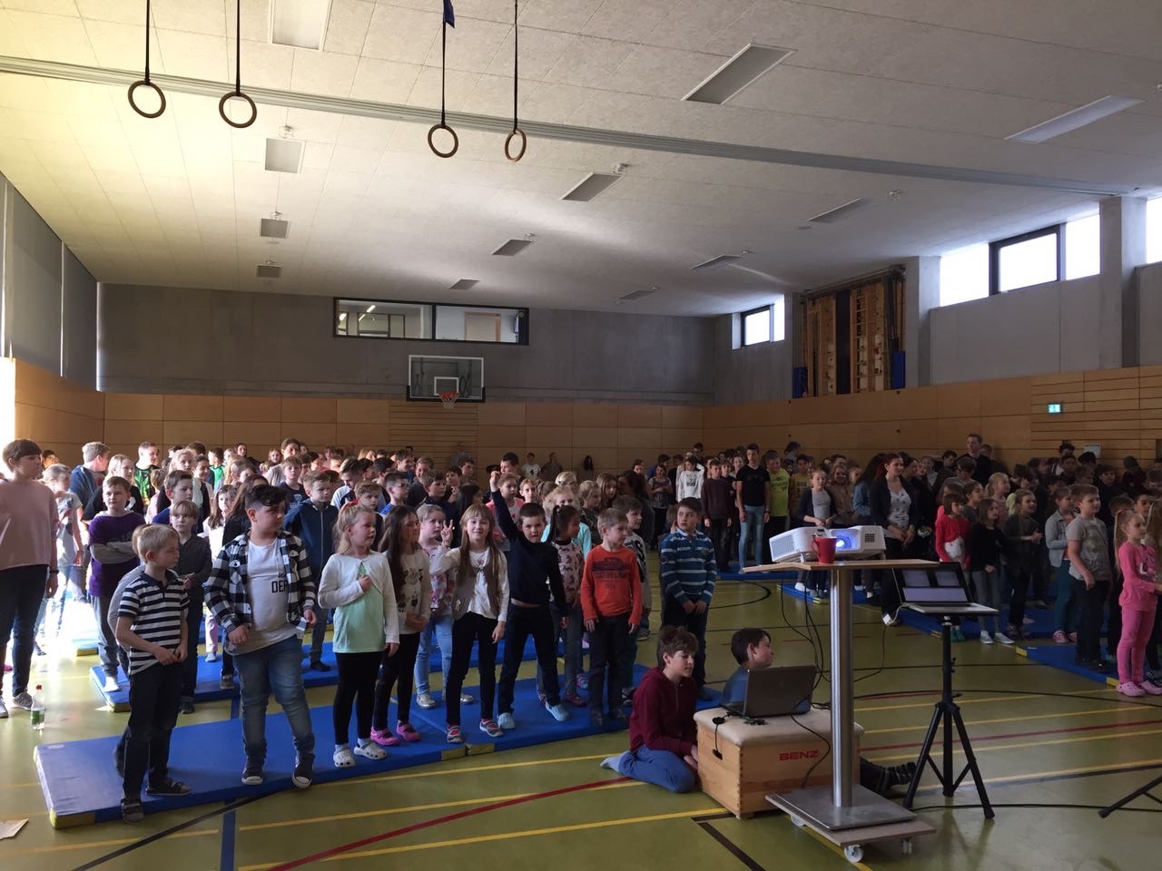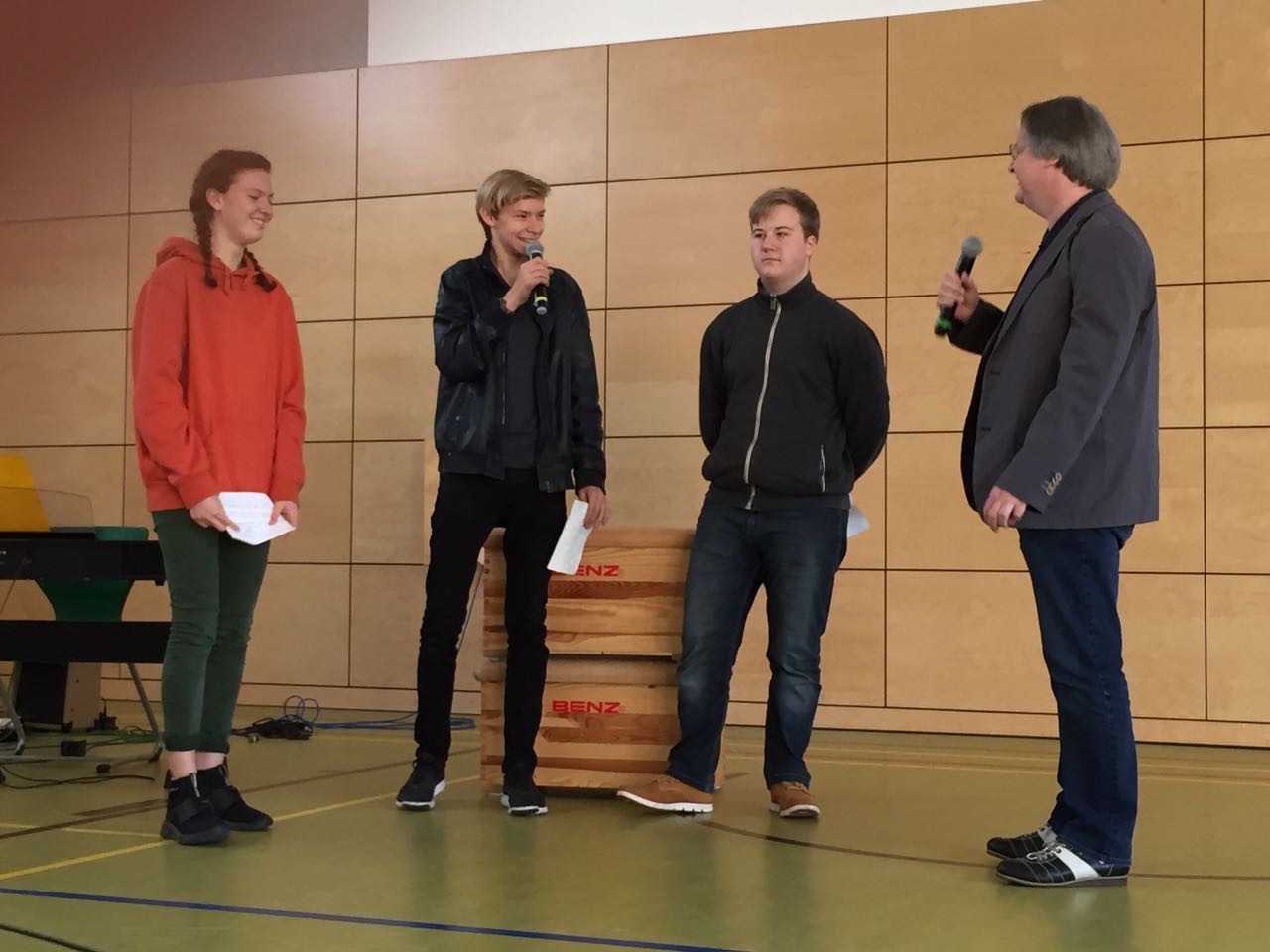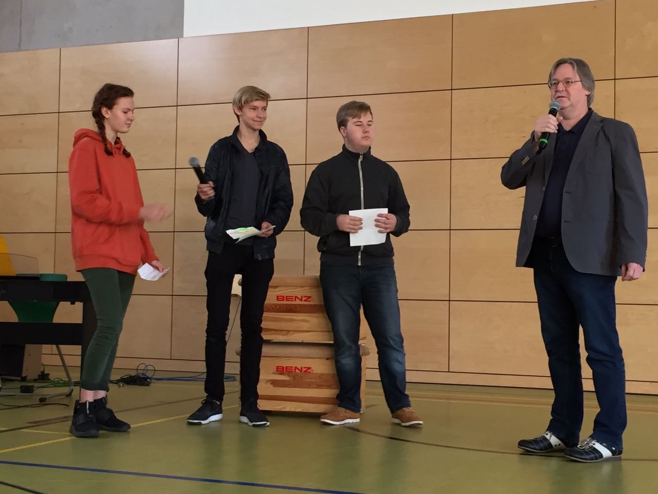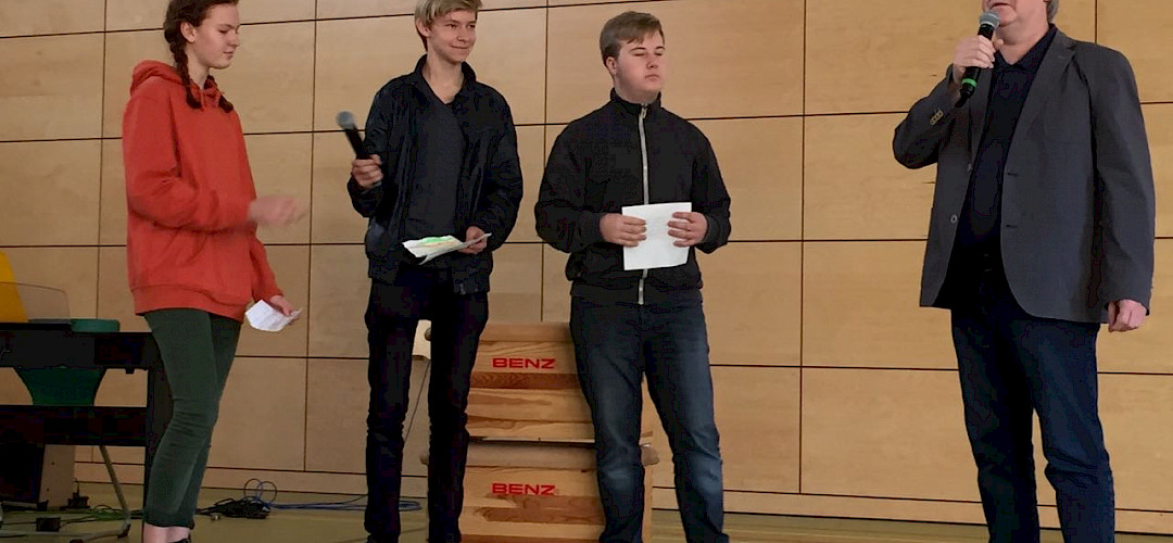 Zur Verabschiedung waren alle Realschüler und manche Grundschulklassen gekommen. Die Zehntklässler hatten ein paar Fragen vorbereitet, die Michael Basler vor der gesamten Schülerschaft beantwortete. Besonders betonte er, dass er die ganze Zeit über nie allein unterwegs war und das ganze "Schulgeschäft" auch nie geschafft hätte, wäre da nicht sein Halt im Glauben und die Unterstützung seines Teams gewesen. Auch sprach Michael Basler offen über Herausforderungen und Zweifel. Passend dazu war das Thema der kurzen Andacht von Schulleiter Bodo Masuhr: Er sprach über Petrus, der versucht, auf dem Wasser zu gehen, und füllte die bekannte Geschichte mit neuem Inhalt. "Schule machen" käme in gewisser Weise dem Versuch, auf dem Wasser zu gehen, gleich.