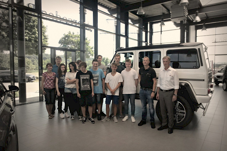 Um die Inhalte des Technikunterrichts der Klasse 9 im Bereich Automobiltechnik zu vertiefen, besuchte der Technikkurs der Klassenstufe 9 am Dienstag, 27.06.2017, unseren neuen Bildungspartner, das Autohaus Mercedes-Benz Südstern-Bölle in Waldshut.
