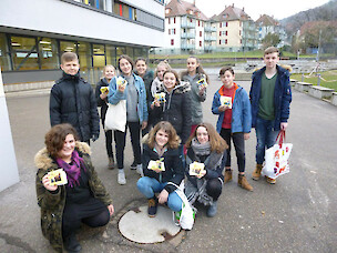 Im Wahlpflichtfach Alltagskultur, Ernährung, Soziales (AES) lernen die Schülerinnen und Schüler unter anderem durch (soziales) Engagement. Die Kochgruppe der Klassenstufe 7 verteilte im Januar leckere, hübsch verpackte Nussecken in der Waldshuter Innenstadt.