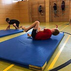 Zwei Schülerinnen, die im Budo-Center Waldshut trainieren, hatten die Idee, ihre Lehrerin könnte ihren Trainer an die CSH einladen. Und so kam Karatelehrer Willy Indlekofer für eine Doppelstunde im Rahmen der Unterrichtseinheit "Raufen und Ringen" und brachte die Schülerinnen und Schüler gehörig ins Schwitzen. Auf ein hartes Aufwärmtraining folgte das Worrior Workout und eine Einführung in eine Verteidigungstechnik.