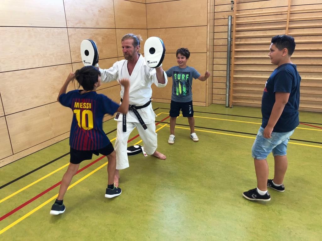 (scn) Der letzte Sportunterricht des Schuljahres war für die Klasse 3a eindrücklich: Sie erhielten eine Einführung in die Kunst des japanischen Karate.