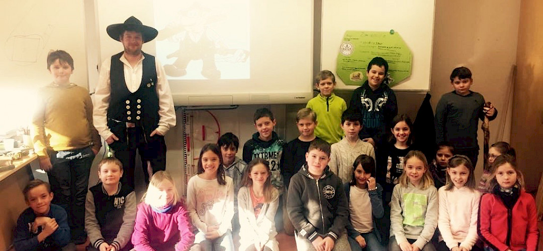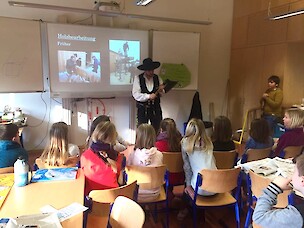Absolut eindrücklich war für die Schülerinnen und Schüler der Klasse 4b das Outfit ihres Gastes am 28.02.2018.