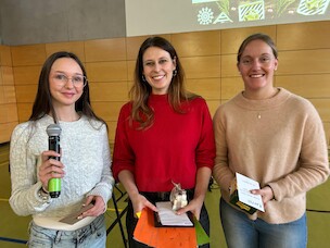 Ein besonderer Teil des Gottesdienstes war die Verabschiedung von Frau Huber, langjährige Schulsozialarbeiterin der CSH, sowie von Frau Mittermaier, die als Vertretungslehrkraft an unserer Schule tätig war. Mehrere Schülerinnen und Schüler nutzten die Gelegenheit, um mit kleinen Geschenken, persönlichen Worten des Dankes und guten Wünschen ihre Wertschätzung auszudrücken. Selbstverständlich durfte dabei auch Frau Hubers legendäres „Cola-Fanta-Sprite-Mezzo-Mix-Spiel“ nicht fehlen, das mit viel Applaus und einem heiteren Abschied endete.