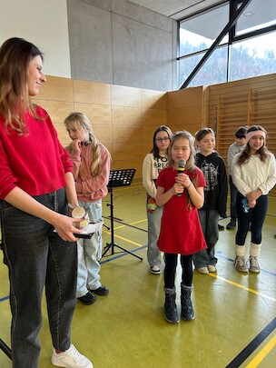 Für einen musikalischen Höhepunkt sorgte der Grundschulchor, der mit zwei weihnachtlichen Liedern zum Mitsingen einlud. Zum Abschluss erhielten alle Schülerinnen und Schüler eine Postkarte mit einem Engel und den Worten „Fürchte dich nicht“. Mit diesem Zuspruch – sich nicht zu fürchten und darauf zu vertrauen, dass Gott auch in den Ferien ganz nahe ist – wurden die Schülerinnen und Schüler in die Klassenräume und schließlich in die Weihnachtsferien entlassen.