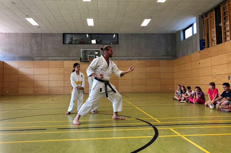 Der letzte Sportunterricht des Schuljahres war für die Klasse 3a sehr eindrücklich: Sie erhielten eine Einführung in die Kunst des japanischen Karate.